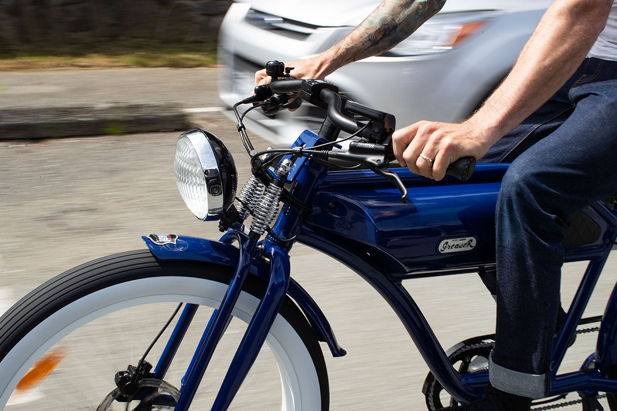 All the bells and whistles of the Greaser Classic, plus gorgeous whitewall tires and upgraded suspension to make your ride feel every bit as smooth as it looks.